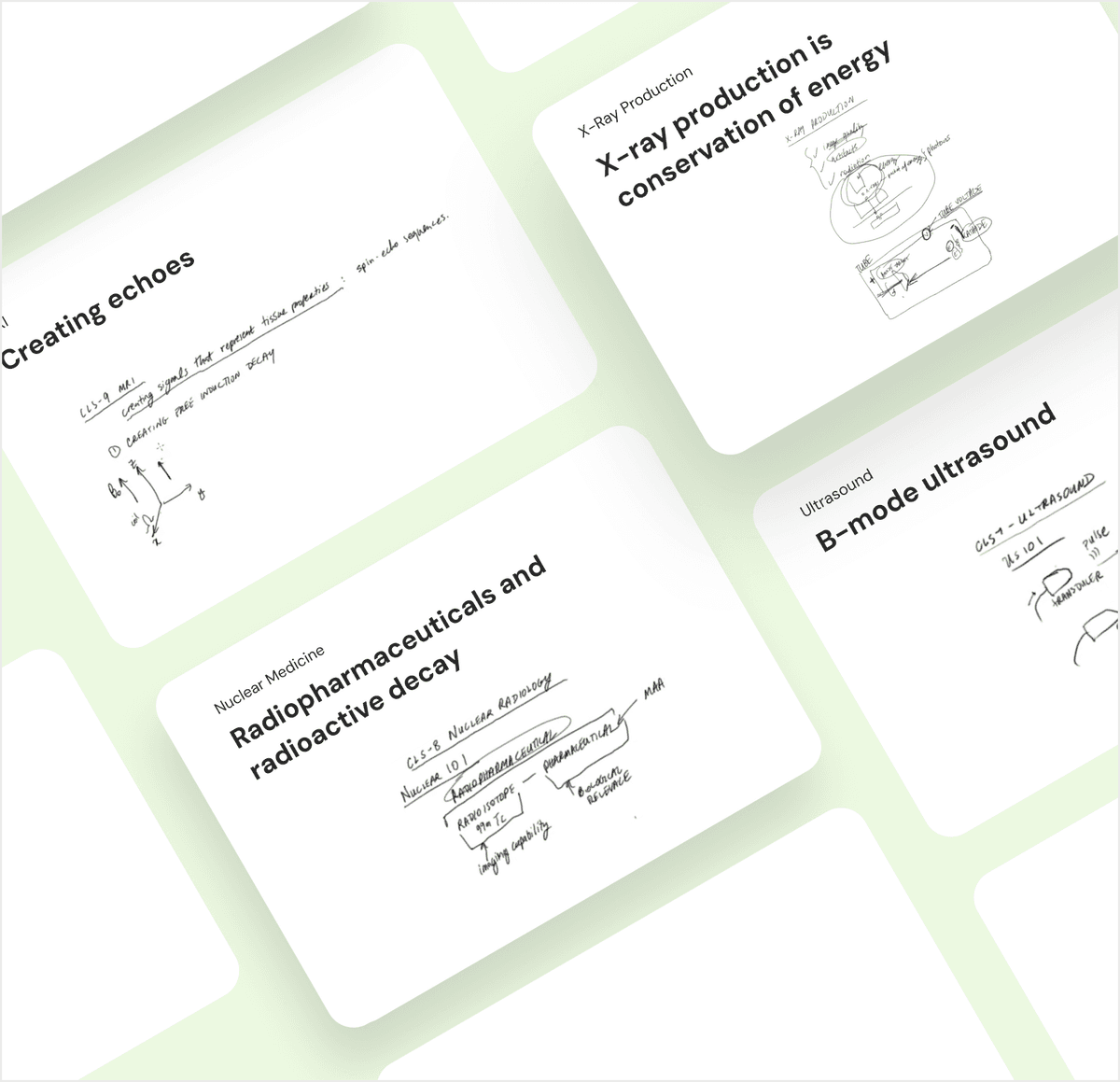 Start gradually with our whiteboard lectures, and finish with durable exposure to exam-day radiology physics.Foundational